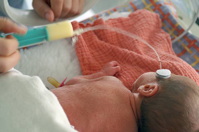 Silvan erhält das Mittagessen; 15ml Muttermilch