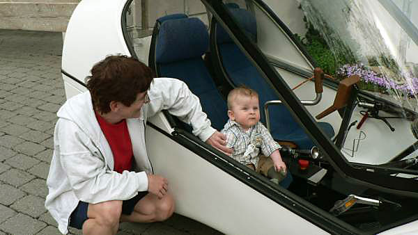 Mai 06: Junger Twiker in Göttis neuem Elektro-Fahrzeug (www.twike.ch)